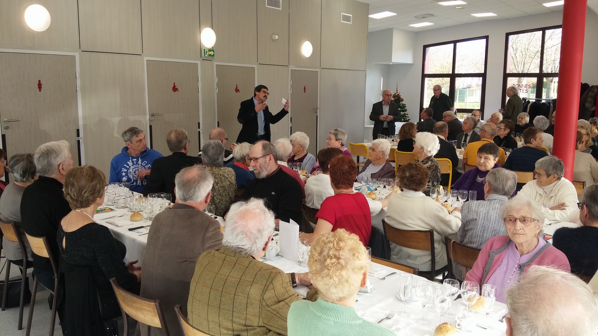 Nos anciens ont tout d’abord eu l’occasion de découvrir le nouveau restaurant scolaire. Ensuite, ils ont pu tendre l’oreille, et écouter le discours du maire. Notre édile a notamment voulu rappeler les travers de la loi NOTRe, qui a pour effet aujourd’hui de nous imposer la REOM (Redevance d’Enlèvement des Ordures Ménagères) décidée par la CCRY avant que nous ne l’ayons rejointe.