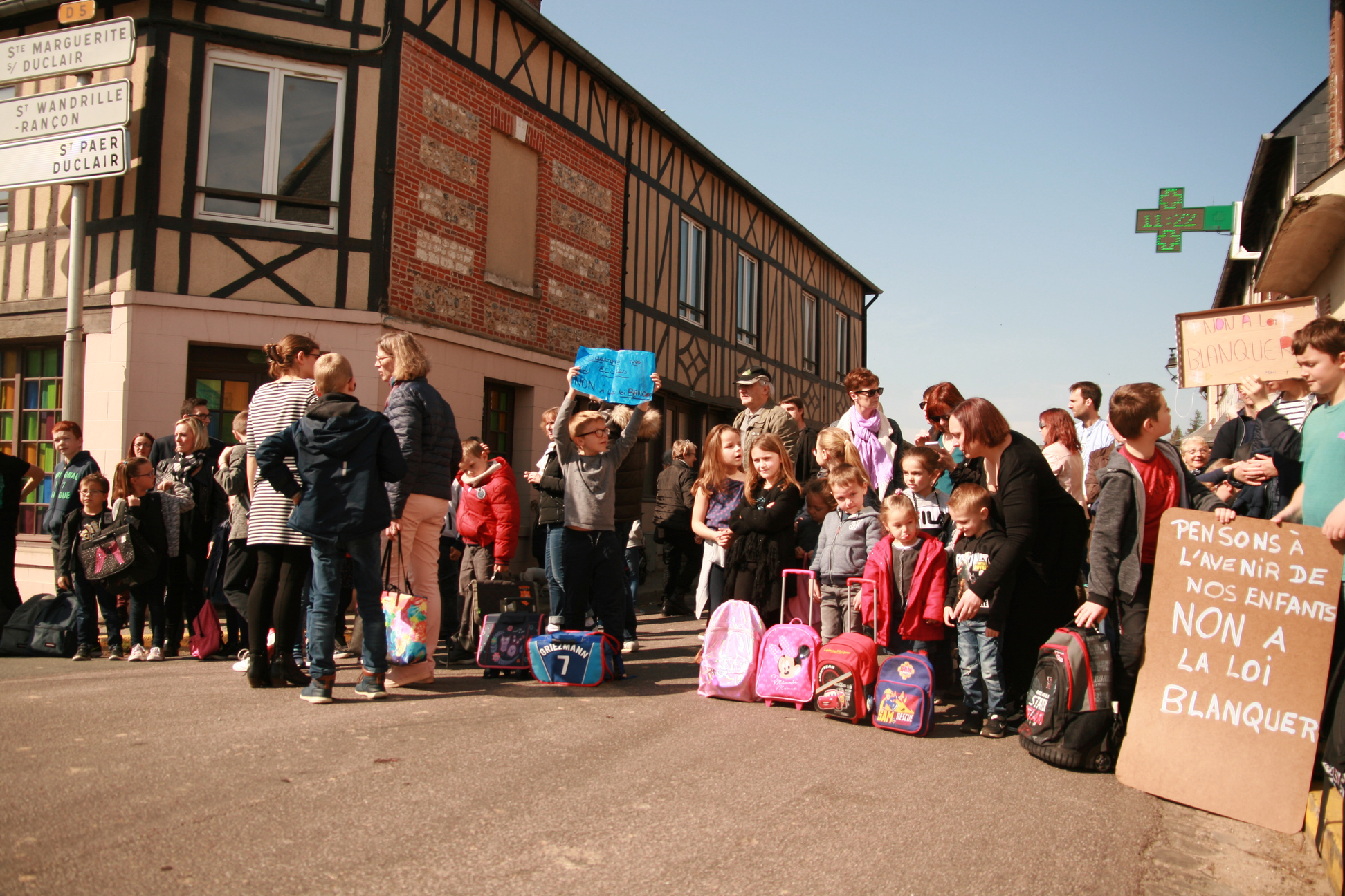 Les parents d’élèves de Fréville évidemment, mais aussi de Betteville, de Bouville ou de Saint-Wandrille, se sont rassemblés à l’école élémentaire. Le but ? Manifester contre ce projet de loi. Pour les parents, c’est notamment la mort de l’école rurale qui se dessine en ce moment. L’allusion est d’ailleurs bien marquée : les manifestants se sont couchés au sol, pour faire « les morts ». Jugez plutôt :
